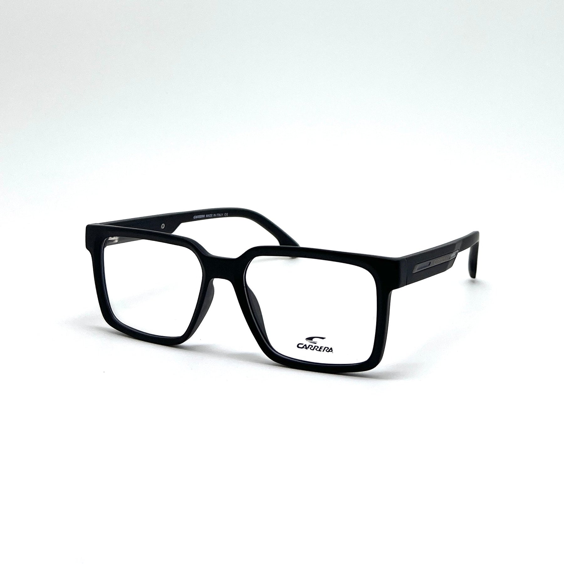The Carrera 8075T embodies masculine elegance with its bold square silhouette crafted from high-gloss black acetate. These frames deliver boardroom-ready polish with all-day comfort, offering the perfect balance of Italian design and sports-inspired durability that defines Carrera's legacy.