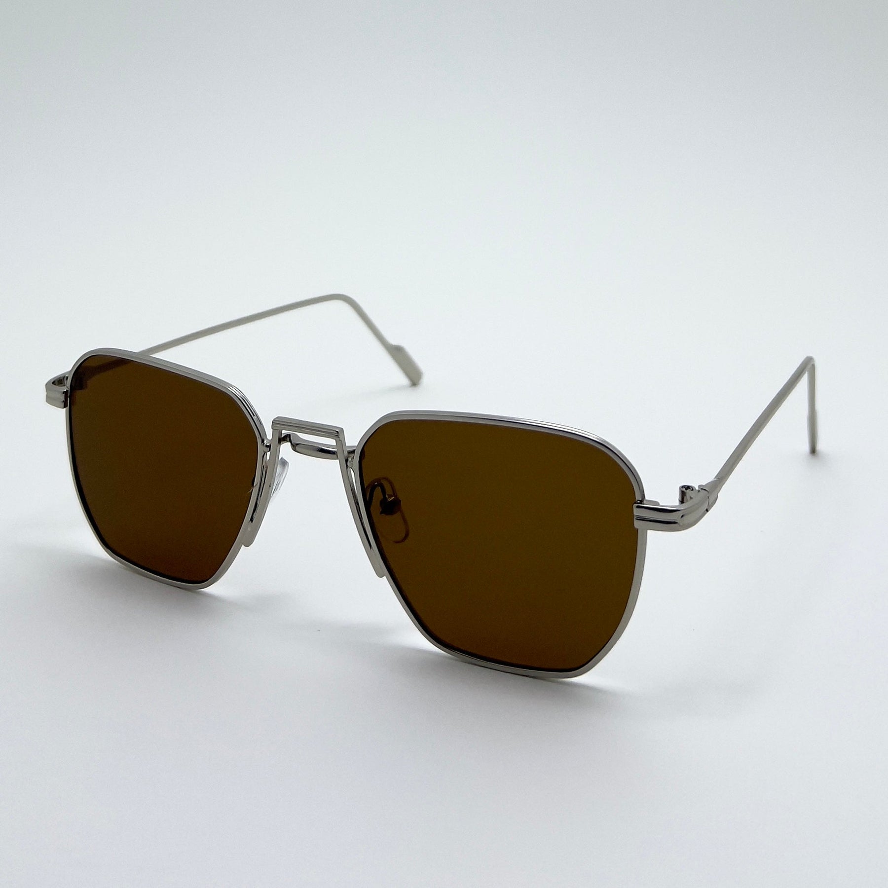 ilver Rectangle Sunglasses – Premium Metal Frame with Brown Lenses